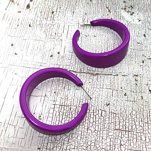 HOT ! Violet Shiny Lucite Retro Emily Hoops - EM-PU-6