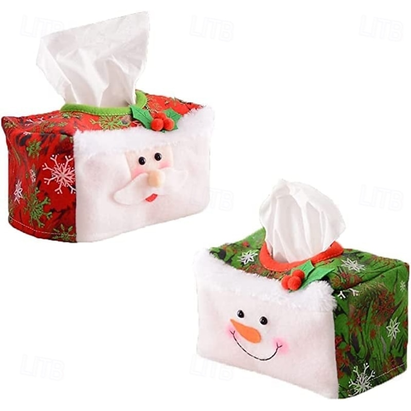 HOT ! Christmas Decorative Tissue Case Festive Tabletop Paper Holder Holiday Party Decoration Christmas Theme Home Decor Accessories Cute Desk Ornament For Living Room Dining Room Celebration