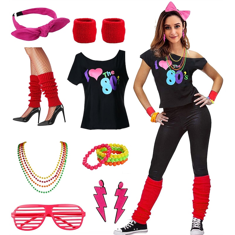 $37.99 - Retro Vintage Disco 1980s Outfits Accessories Off Shoulder T-Shirt I Love the 80's Fancy Dress Women's Masquerade Party / Evening Pride Parade Pride Month Adults' Costume 2025. Shop for cheap Outfits online? Buy at lightinthebox.com on sale today!
