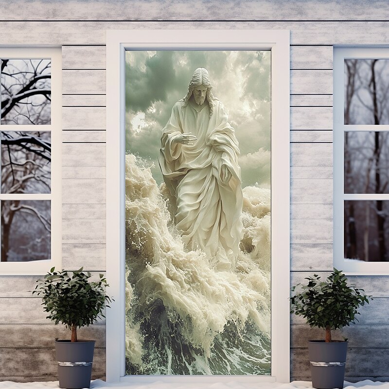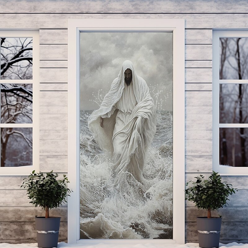 HOT ! Jesus Door Decorations Door Covers Jesus Walk on Water Faith Nativity Door Tapestry Door Curtain Decoration Backdrop Indoor/Outdoor Door Banner for Front Door Office Door