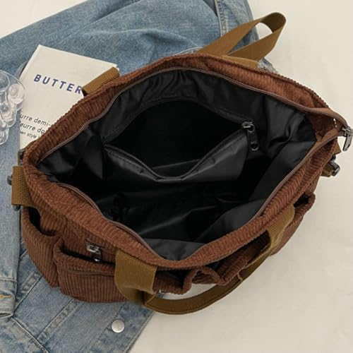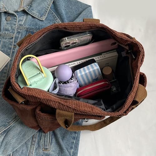 Large Canvas Tote Bag for Women Multi-pocket Corduroy Messenger Shoulder Bags Crossbody Purse Handbag WorkShopping 5