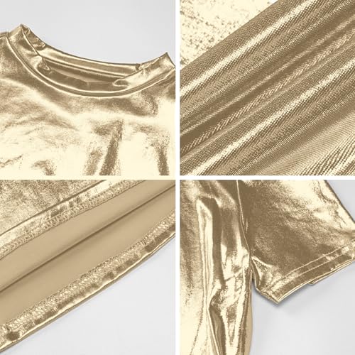 Women's Shiny Metallic Short Sleeve T Shirt Sexy Mock Neck Slim Crop Top Party Disco Club Tees 4