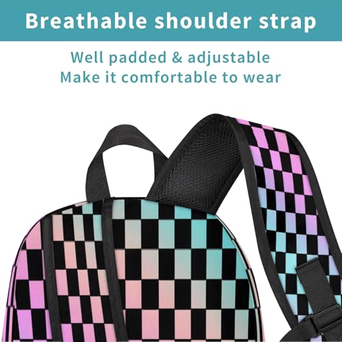 Rainbow Checkerboard Large Capacity Backpack, 18 Inch Multi Pocket Laptop iPad Tablet Backpacks Business Travel Hiking Daypack Casual Rucksack for Women Men Gifts 7