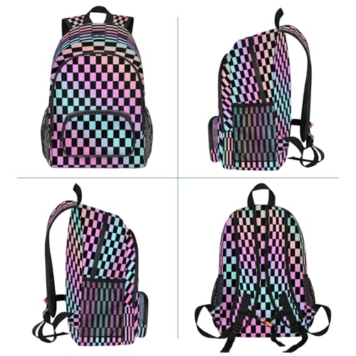 Rainbow Checkerboard Large Capacity Backpack, 18 Inch Multi Pocket Laptop iPad Tablet Backpacks Business Travel Hiking Daypack Casual Rucksack for Women Men Gifts 6