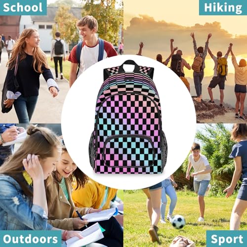 Rainbow Checkerboard Large Capacity Backpack, 18 Inch Multi Pocket Laptop iPad Tablet Backpacks Business Travel Hiking Daypack Casual Rucksack for Women Men Gifts 4