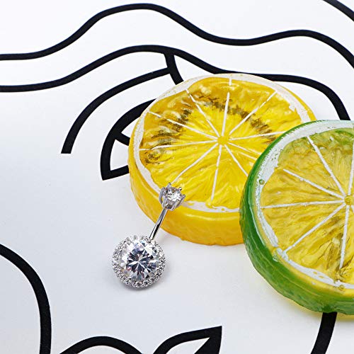 Sllaiss CZ Halo Belly Button Rings for Women 925 Sterling Silver 14G Belly Rings Round Cubic Zirconia Body Jewelry Curved Barbells Navel Rings 3/8" 10mm 7