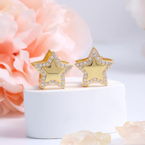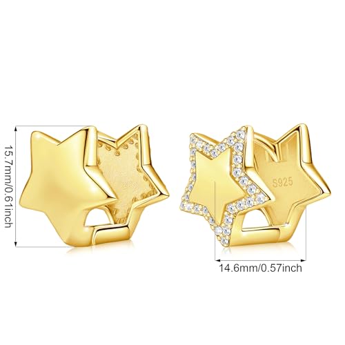 Gold Star Hoop Earrings for Teen Girls Women - Sterling Silver Double Sided Earrings Hypoallergenic Cubic Zirconia Star Earrings Double Star Loop Earrings Fashion Women's Earrings Gifts for Christmas 6