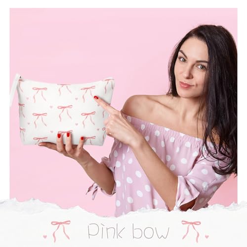 HOT ! DDLP Pink Bow Makeup Bag for Women Preppy Pouch Travel Cosmetic Bag Coquette Makeup Bag Birthday Valentines Day Christmas Gifts for Bestie Mom Daughter Teen Girls (White)