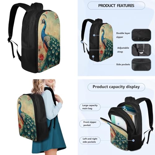 More information about Flashideas Peacock Kids Backpack Set 4 Piece School Backpack Set with Insulated Water Bottle Portable Lunch Bag Water Bottle Holder with Strap for Kids Teens Elementary Middle School
