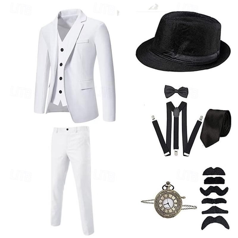 More information about Vintage Roaring 20s 1920s Outfits Suits & Blazers Accesories Set The Great Gatsby Gentleman Solid Color Halloween V Neck Fancy Dress Men's Halloween Halloween Bachelorette Party Adults' Cravat Coat