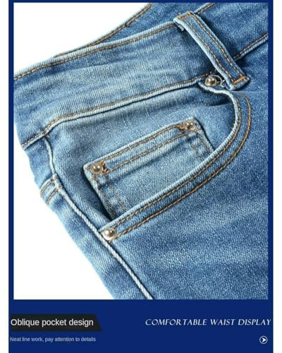 Jeans Pants Trouser Denim Men Stretch Tight Fit Slim Trendy Street Washed Blue Grinding Fading Patched Casual(Blue,29) 7