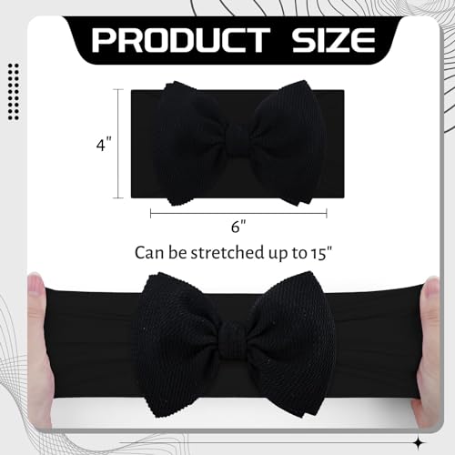 YanJie Baby Girl Bow Headbands - Black, White Nylon Hair Bows for Infants and Toddlers 0-6 Months 6
