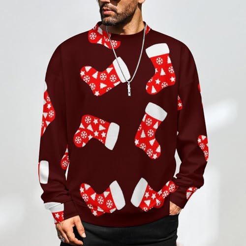 MoBlinko Mens Sweater Retro Christmas Socks Sweaters for Men Crew Neck Sweater for Men Lightweight Pullover 1