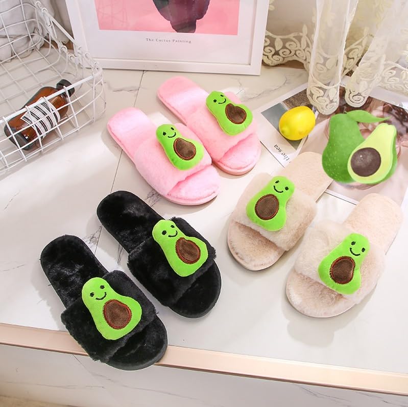 HOT ! Avocado Fuzzy Fluffy Slippers for Women - Warm Fruit Slippers, Cute Non-Slip Indoor/Outdoor Slides