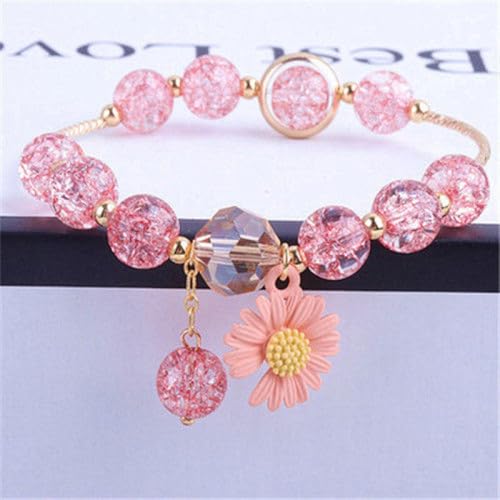 HUASAI Pink Flower Bracelet for Teen Girls Cute Daisy Charm Bracelet Pink Daisy Pendent Crystal Bracelets Summer Jewelry Gifts 7