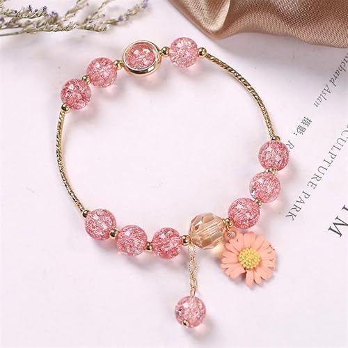 HUASAI Pink Flower Bracelet for Teen Girls Cute Daisy Charm Bracelet Pink Daisy Pendent Crystal Bracelets Summer Jewelry Gifts 5