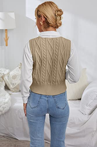 Aoysky Sweater Vest Women's V-Neck Sweater Tank Tops Pullover Cable Knit Vest Solid Color Sleeveless Loose Fit Sweater Top 3