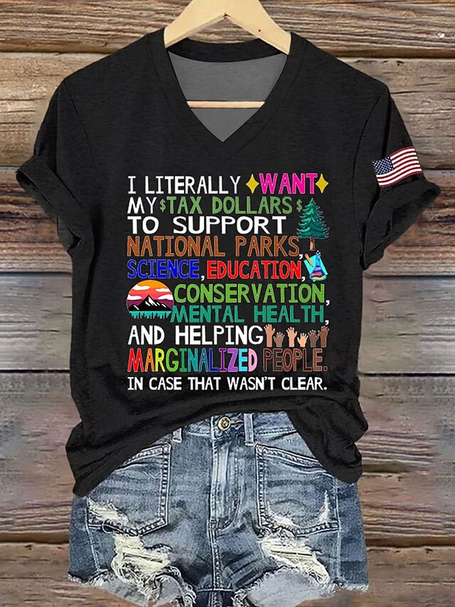 HOT ! Women's T Shirt Graphic Letter Casual Short Sleeve V Neck Regular Tops Daily Print Black White Blue Green Summer Spring
