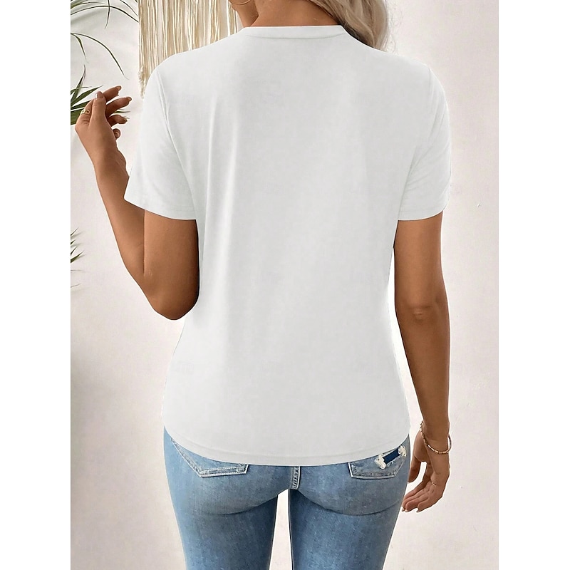 Women's T Shirt Graphic Letter Casual Short Sleeve V Neck Regular Tops Daily Print Black White Blue Green Summer Spring 9