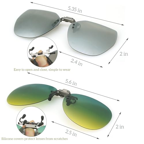 • Powerful Night Vision Clip On Sunglasses: Equipped with HD polarized technology, these clip-ons block glare and stray light, offering clear vision. Perfect for night runners, cyclists, and especially drivers. Enhance road visibility, reduce high beam glare, and improve nighttime driving safety.