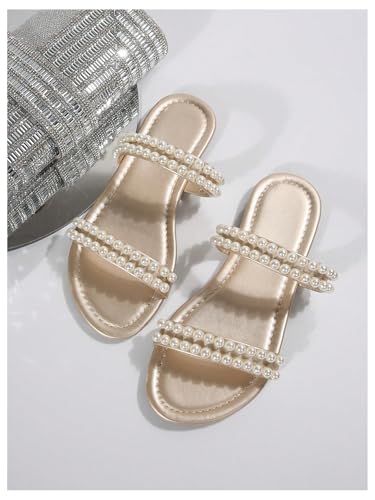 GORGLITTER Women's Pearl Beaded Flat Sandals Open Toe Beach Vacation Slide Sandals 5