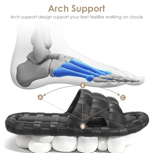 • 🎈【Soft & Lightweight】: Our shower shoes for women men are made of high-quality natural rubber, lightweight, quick-drying, silent design, elastic and can be bent and curled easily, it can provide a comfortable fit. Indoor and outdoor slippers are ergonomically designed to provide support for the foot and effectively balance pressure. Unisex slippers make you feel like you are walking on clouds.Please note that the actual size of the slippers is slightly smaller than the same size.