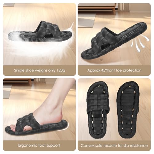 • ✔【Simple and Stylish】: Simple design, beautiful and practical, these house slides shower sandals are easy to slip on and protect your feet from pressure. 360° stress-free bending, flexible and durable. 45° front toe protection to reduce foot pain. Hotel style slippers swimming pool slippers are available in a variety of colors, suitable for both men and women, and couple styles to meet the needs of different users.