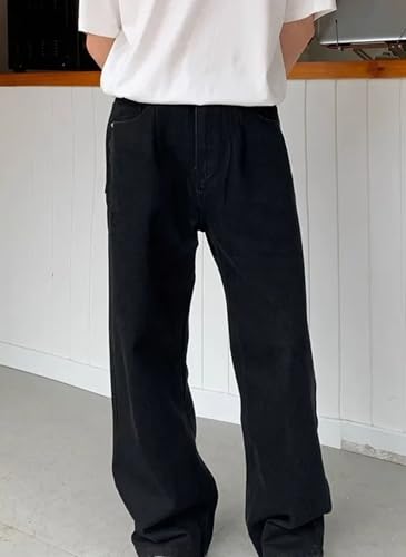 More information about Men’S Retro Loose Fit Wide Leg Plaid Cotton Pants High Waist Button Fly Distressed Full Length Casual Simple Style Jeans