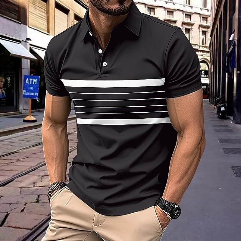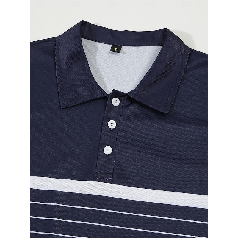 More information about Men's Polo Business Polo Business Casual Lapel Classic Short Sleeve Color Block Stripes Buttons Summer Spring & Fall Black Red Navy Blue Brown Khaki Polo
