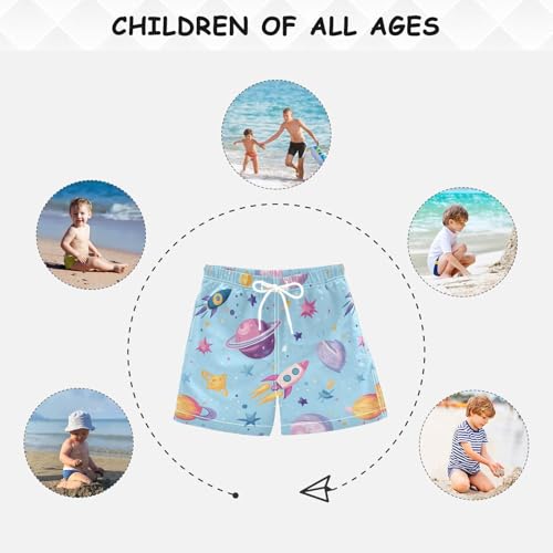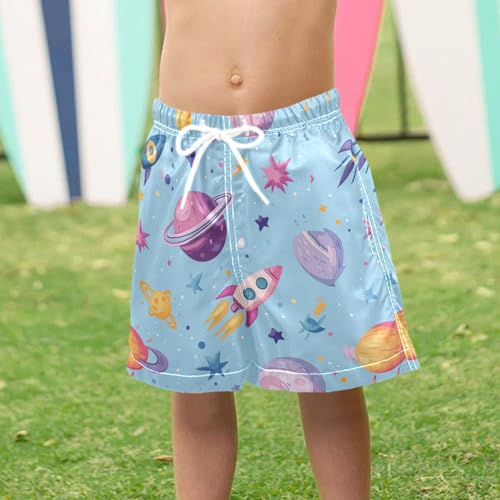 Pigsaly Boys' Swim Board Shorts Planets Space Rockets Boy's Swim Trunks Kids Swimwear 5T Multicolor 6