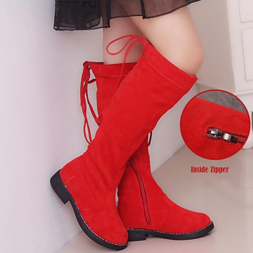 WUIWUIYU Girls Knee High Boots Ties Zipper String Suede Over Knee Long Boots Round Toe Lovely Princess Shoes 5