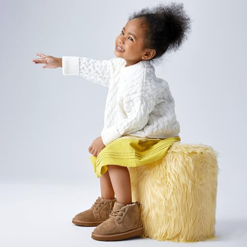 EasyStar Girls and Boys Winter Lace-Up Warm Fur Lining Ankle Boots with Side Zipper 6
