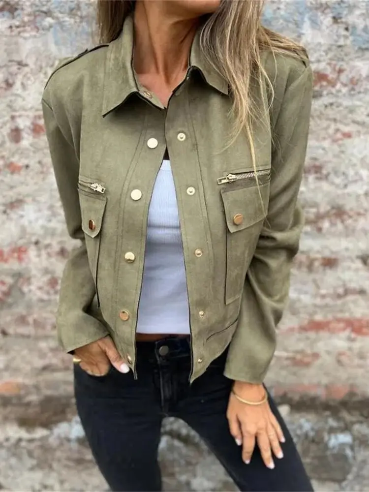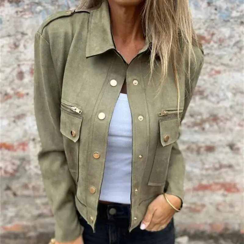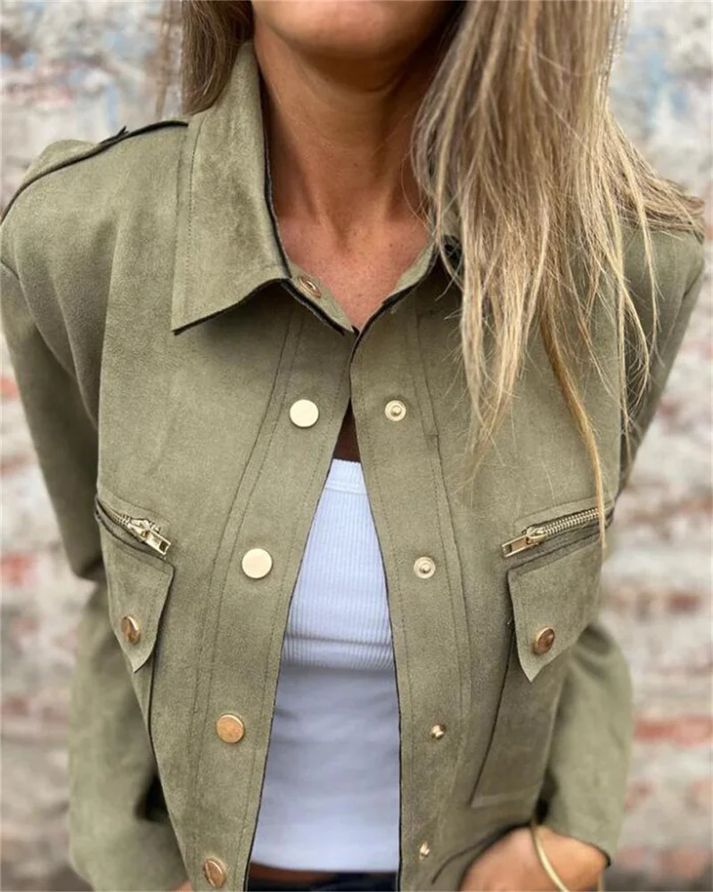 Plus size women's fashion casual deerskin velvet button long-sleeved jacket