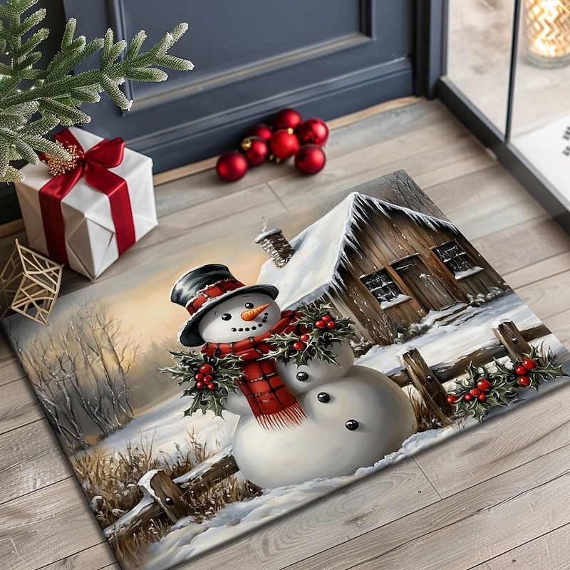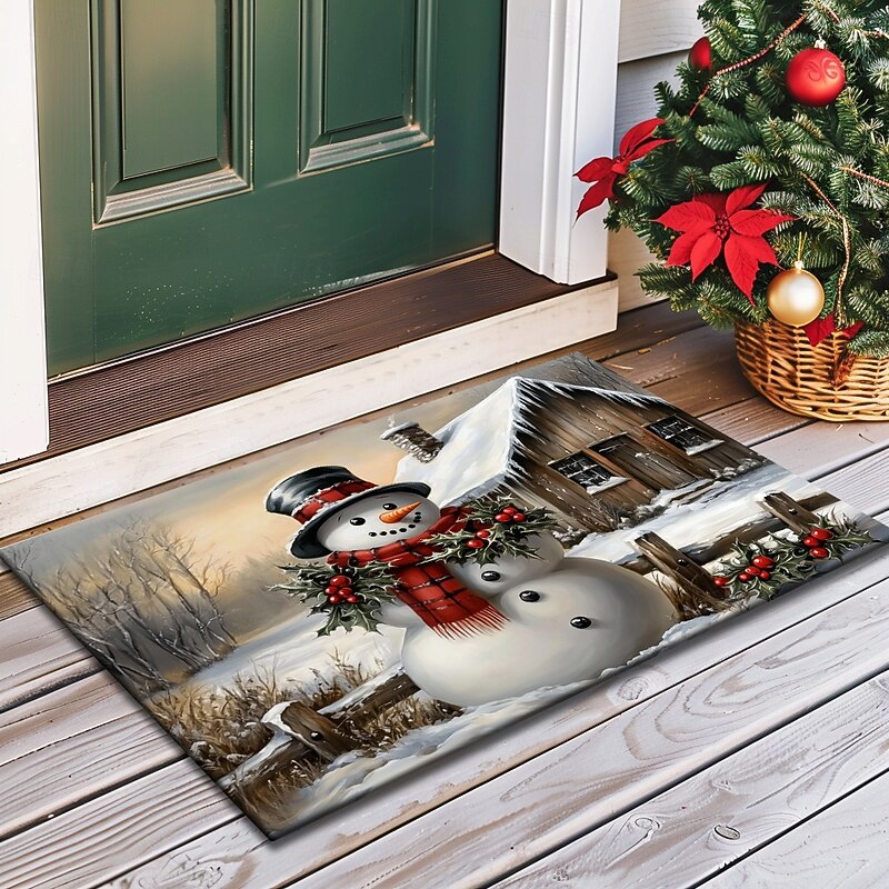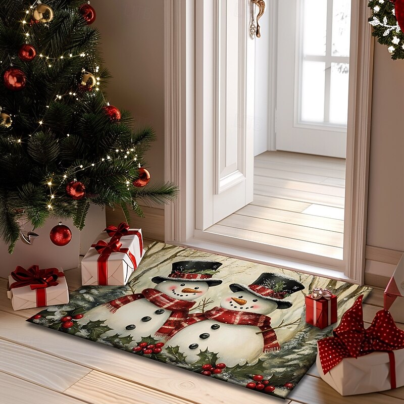 Christmas Decoration Doormat Xmas Snowman Couple Kitchen Mat Floor Mat Non-Slip Area Rug Oil Proof Rug Indoor Outdoor Mat Bedroom Decor Bathroom Mat Entrance Rug 25