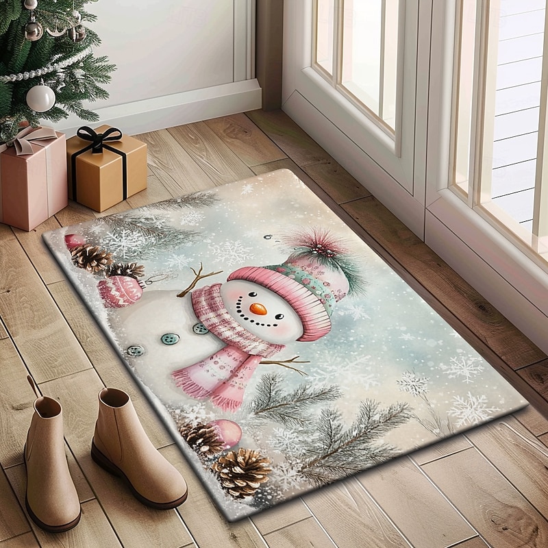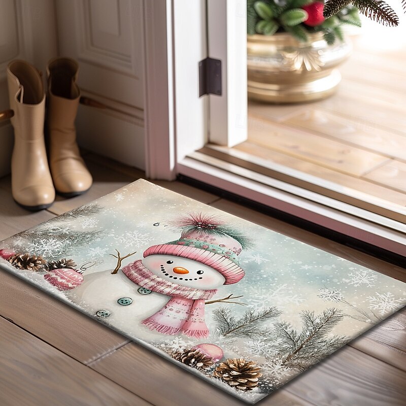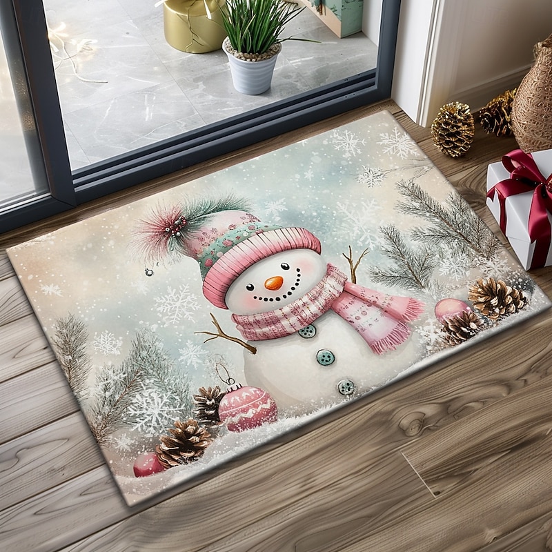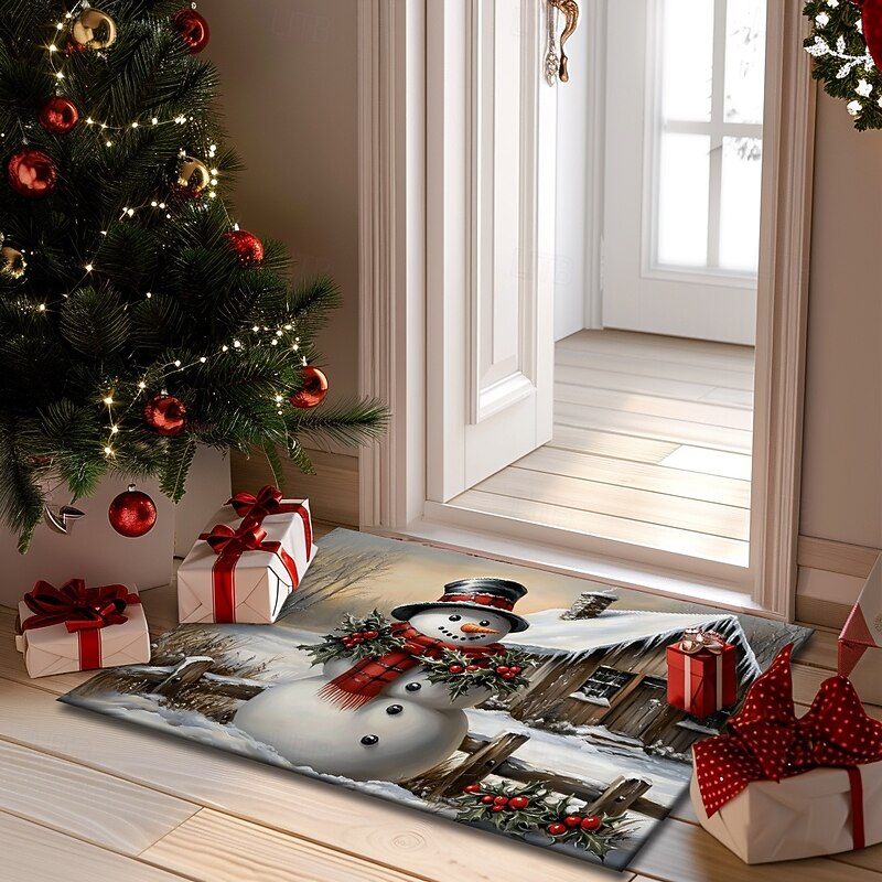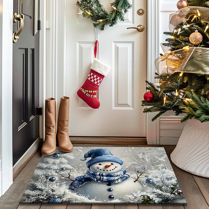 Christmas Decoration Doormat Xmas Snowman Couple Kitchen Mat Floor Mat Non-Slip Area Rug Oil Proof Rug Indoor Outdoor Mat Bedroom Decor Bathroom Mat Entrance Rug 19