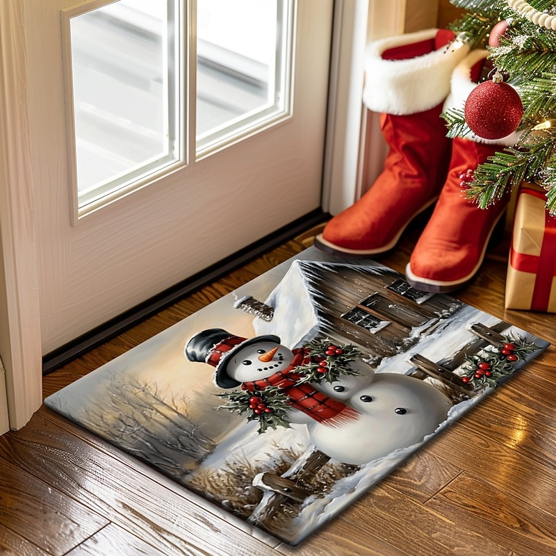 Christmas Decoration Doormat Xmas Snowman Couple Kitchen Mat Floor Mat Non-Slip Area Rug Oil Proof Rug Indoor Outdoor Mat Bedroom Decor Bathroom Mat Entrance Rug 1
