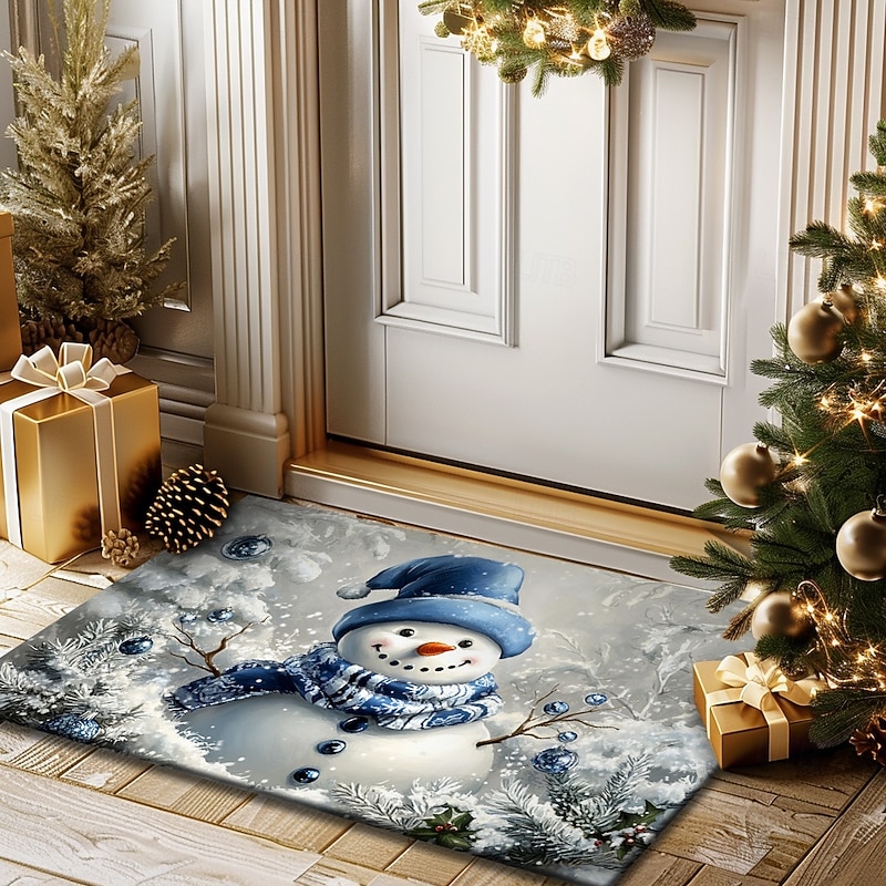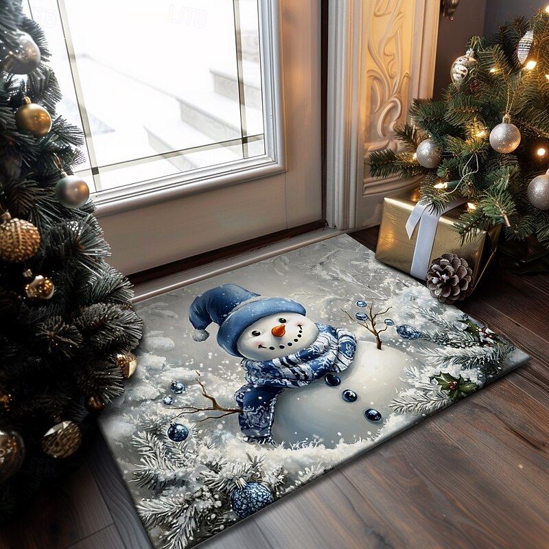 Christmas Decoration Doormat Xmas Snowman Couple Kitchen Mat Floor Mat Non-Slip Area Rug Oil Proof Rug Indoor Outdoor Mat Bedroom Decor Bathroom Mat Entrance Rug 15
