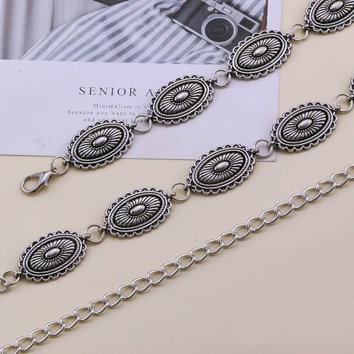 CSIYANJRY99 Western Chain Belt for Women Vintage Gold Silver Concho Link Chain Belts Cowboy Cowgirl Belt for Jeans Dresses 5