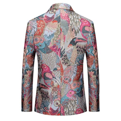 HOT ! UNINUKOO Mens Blazer Printed Suit Jacket 1 Button Slim Fit Floral Dinner Sport Coat Blazers US Size 42 Gray Pink