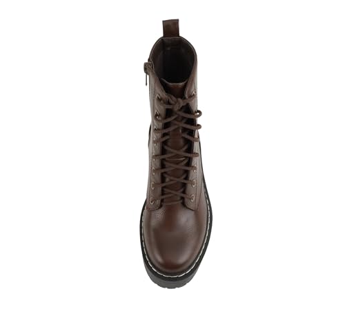 Soda FLING Women Chunky Lug Sole Lace up Fashion Combat Ankle Boot w/Side Zipper 5