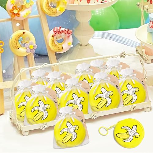 HOT ! 15 Pack Banana Coin Purse, Keychain Wallet Bag, Small Zipper Pouch, Party Favors for Fruit Themed Party, Baby Shower, Birthday, School Carnival Rewards, Travel, Classroom Prize