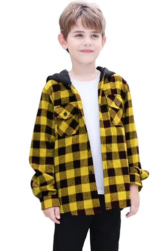 DAIMIDY Boy's Button Down Plaid Flannel Shirt Long Sleeve Hoodie Jacket 6