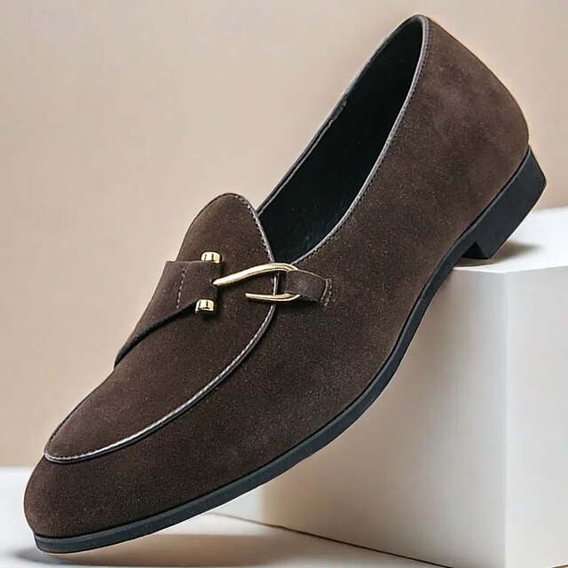 More information about Men's Brown Suede Loafers with Gold Buckle Detail – Stylish Slip-On Shoes for Casual and Semi-Formal Occasions
