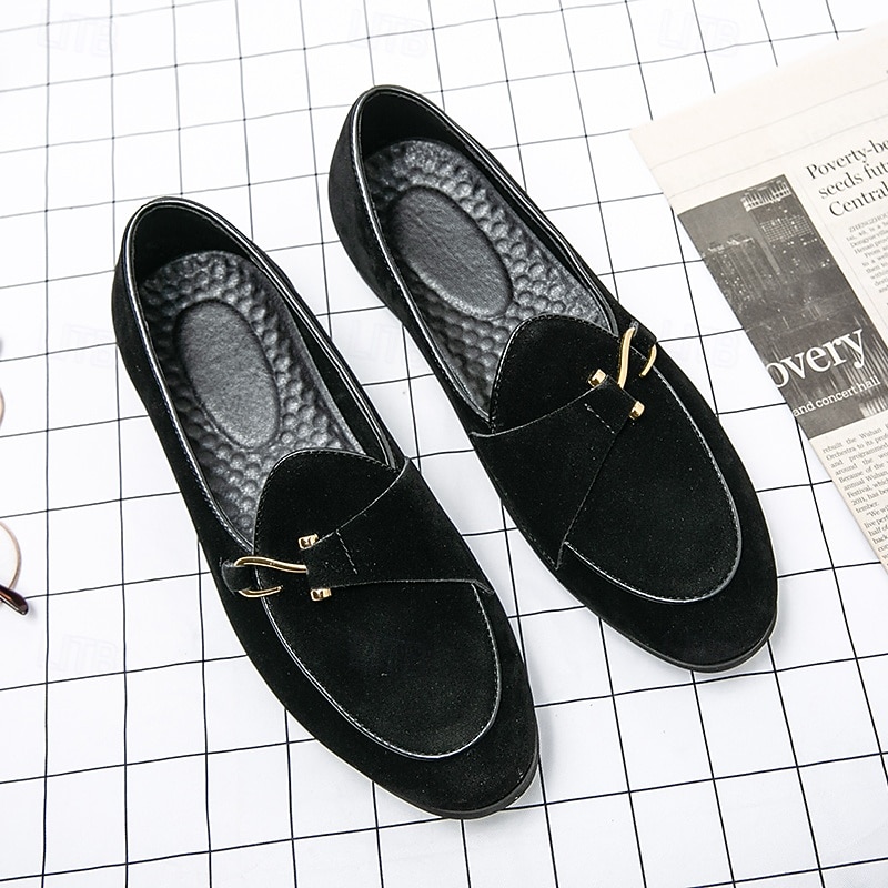 HOT ! Men's Brown Suede Loafers with Gold Buckle Detail – Stylish Slip-On Shoes for Casual and Semi-Formal Occasions