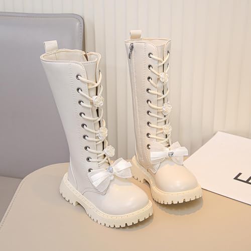 Girls Knee Length Boots, Fall Winter Mid-Calf Boot With Side Zipper, Outdoor Riding Boots Lace-Up Dress Kids Shoes 4