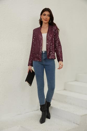 • 【STYLISH DESIGN】The women sparkle sequin blazer jacket comes with shoulder pads and lining, featrues lapel and open-front design, easy to put on and take off. This sequin blazer is perfect for the woman who wants to keep free and comfortable all the time. Your Best Choice!