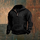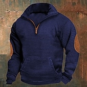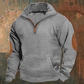 More information about Men's Sweatshirt Waffle Sweatshirt Quarter Zip Sweatshirt Black Navy Blue Khaki Light Grey Gray Half Zip Color Block Patchwork Ribbed Front Pocket Sports & Outdoor Daily Holiday Polyester Streetwear