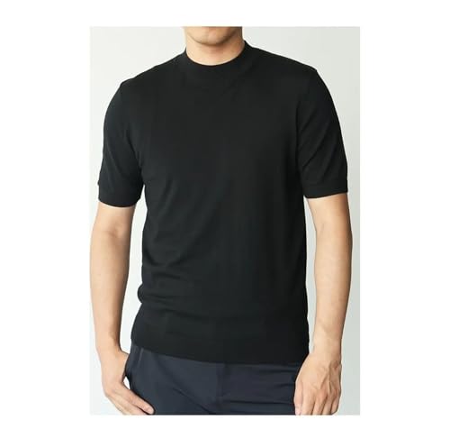 HOT ! Men Wool Mock Neck Machine Process Short Sleeve Solid Sweater Pullovers