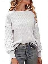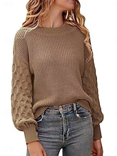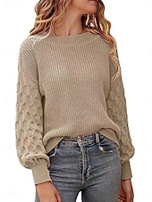 More information about Women's Sweater Pullover Sweater Jumper Casual Soft Pure Color Ribbed Crew Neck Knitted Lantern Sleeve Long Sleeve Regular Tops Knit Outdoor Daily Weekend White Khaki Fall Winter