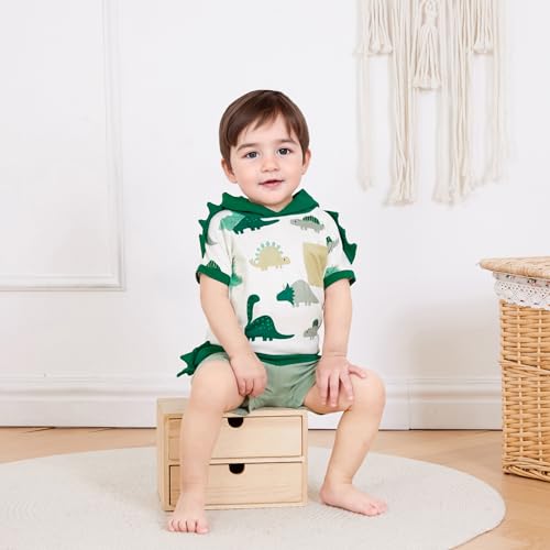 Toddler Baby Boy Hooded Summer Clothes Dinosaur Short Sleeve Color Block Shorts Set Cute Infant Summer Outfit 4